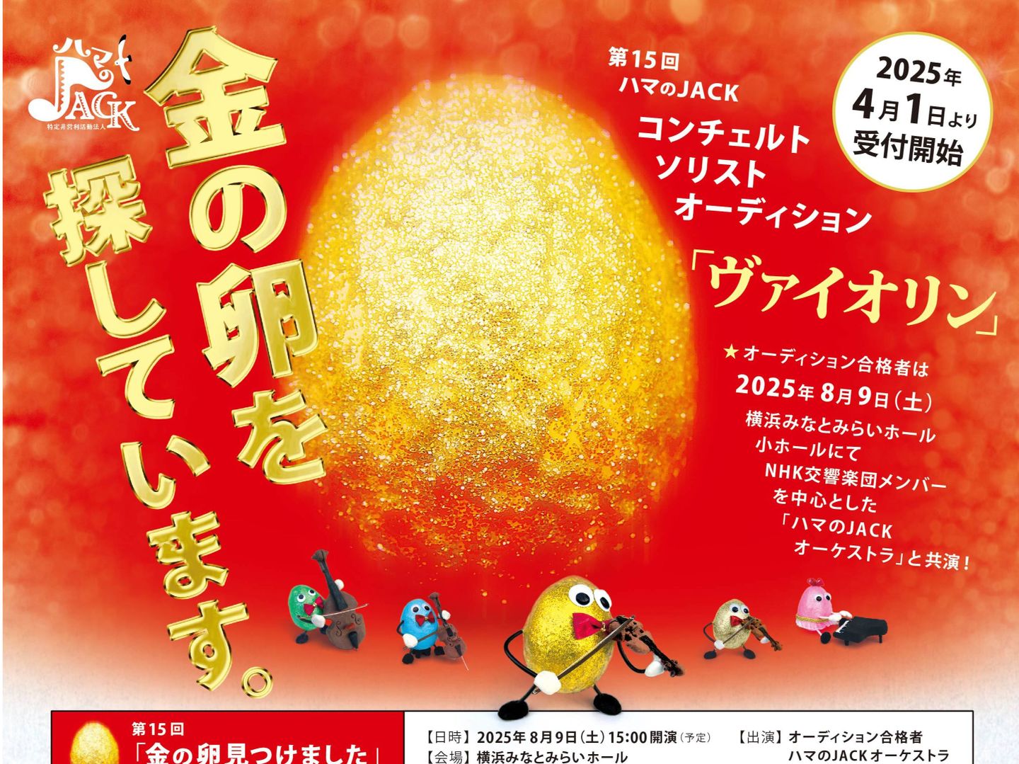 | 2025/11/30 | 第16回ハマのJACK金の卵コンチェルトソリストオーディションの要項を発表しました |